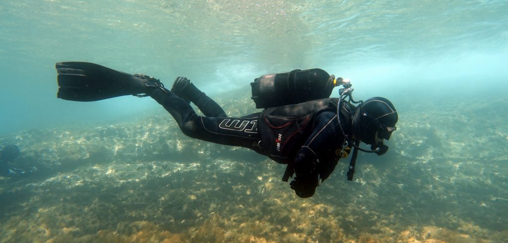 Vor etwa 20 Jahren hatte ich erstmals spaßeshalber eine Pressluftflasche umgeschnallt und gefühlte Atemnot. Einige Jahre später lebte ich auf Kreta versuchte ich mich beim Schnorcheln – der Strand war ja direkt vor der Haustür. Aber ich vertraute dem Schnorchel nicht, hatte Angst Wasser einzuatmen. Dass ich später mal Tauchlehrer werde, war nun wirklich nicht abzusehen.